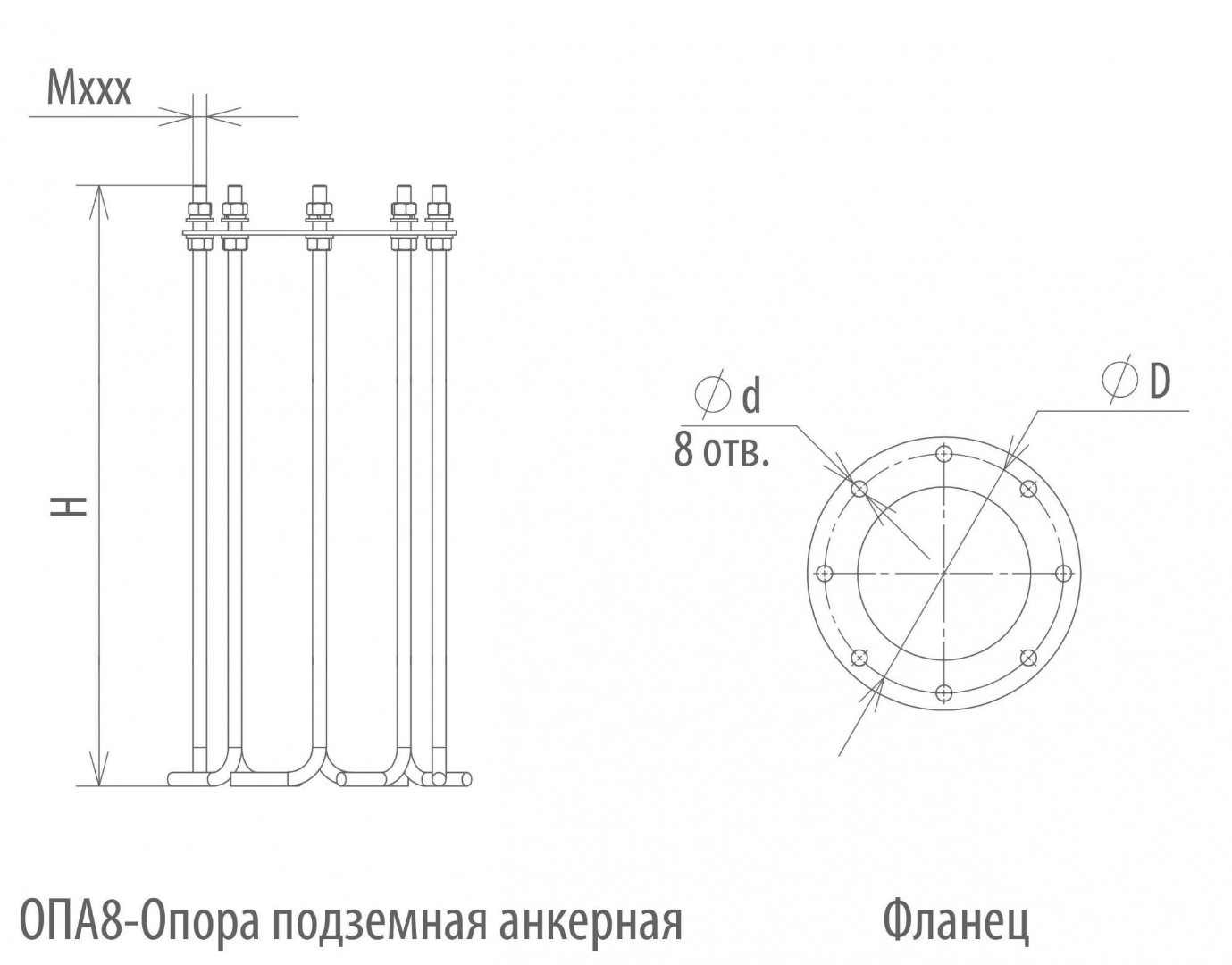 | Обозначение | Наименование | Высота H, м | Размер опорного фланца D, мм | Размер крепежного отверстия Ød, мм | Количество отверстий, шт | Крепежный комплект |